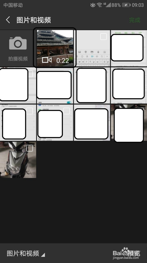 跳到可以插入图片和视频界面。在这选择视频,所以选择视频。也可以点击相机图标直接拍摄或摄影。