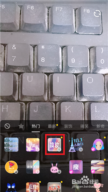 打开道具界面后找到热点道具下方的【换妆】选项并点击该贴纸利用。