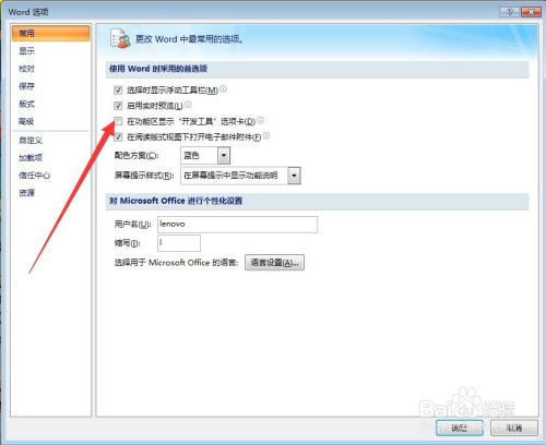 在【常用】设置中,找到【在功能区显示开辟东西选项卡】,如下图所示: