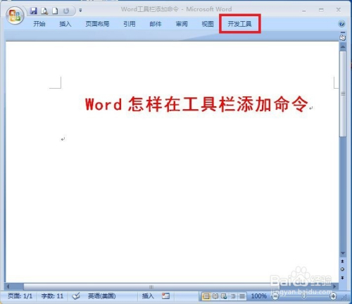 WORD软件新版本是要破费很多钱才能买到的,所以很多人选择了老版本Word2007。Word2007的东西栏可以添加和删除号令。可能不少网友还不知道,东西栏仍是WORD软件默认的,没有把一些常用号令添加到东西栏里。在word中编纂文档的时辰,我们有时辰会用到开辟东西中的功能,如控件,代码,架构等,而word2007的默认东西栏中没有显示【开辟东西】的选项,那么如何设置在东西栏添加开辟东西呢?