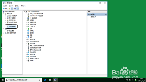切换到计较机办理窗口。在窗口中点击设备办理器项。