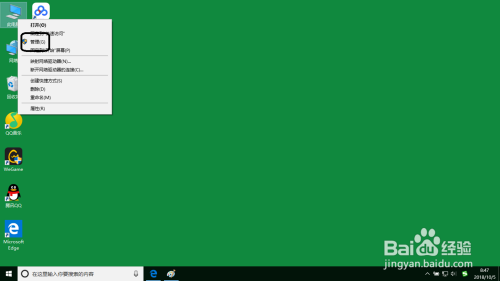 然后按鼠标右键弹出计较机(我的电脑、此电脑)的快捷列出菜单。