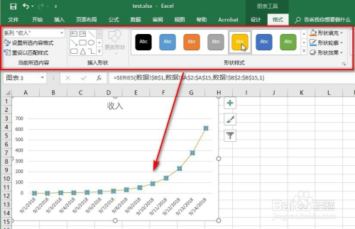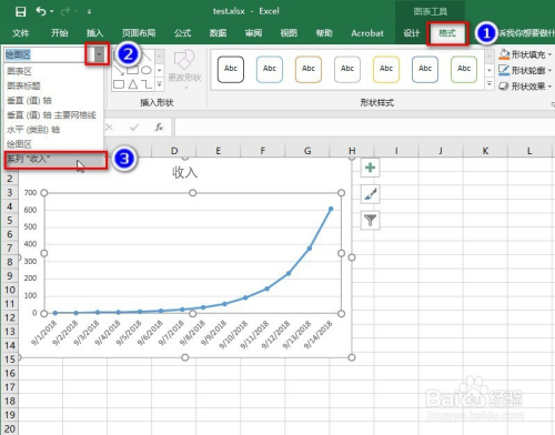 在区域选择下拉菜单选中“系列‘收入’”,即为折线图“收入”线条。