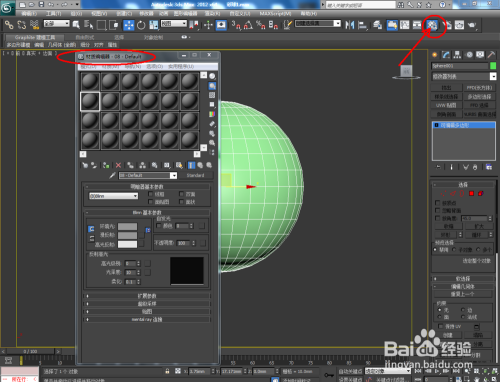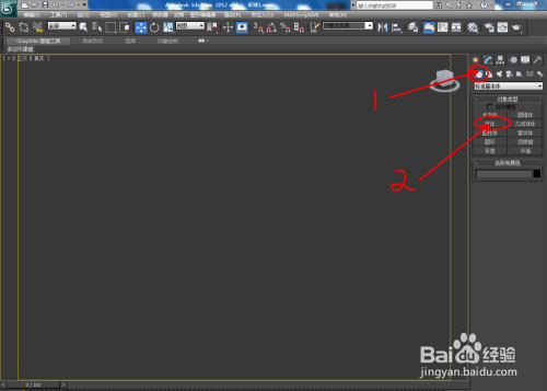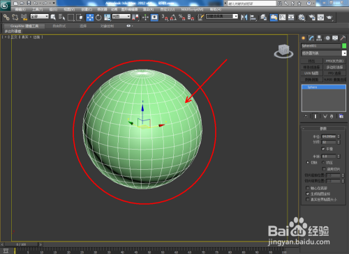 打开3Dmax2012软件,点击【建立】-【几何体】-【球体】,在作图区画出一个球体;