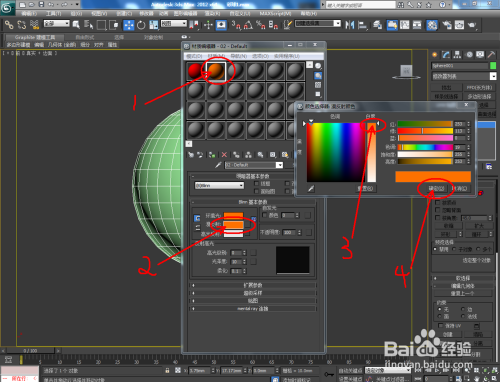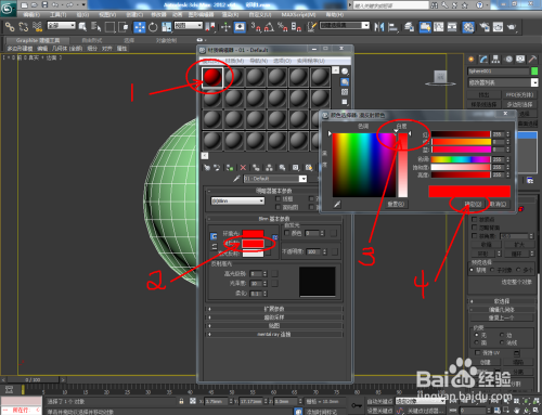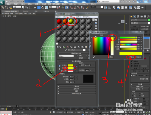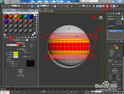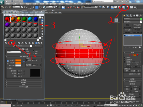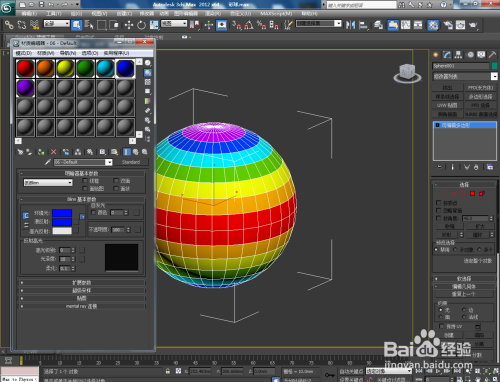 选中球体,点击【多边形】后,按住键盘“Ctrl”键不放,别离框选各个颜色区域,并别离进行附加材质球材质;