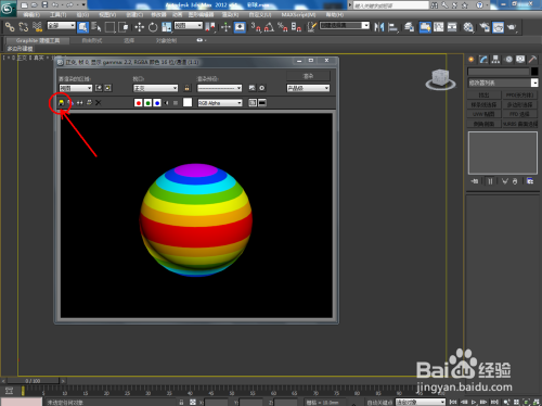 点击【衬着帧窗口】-【衬着】,衬着出我们建造好的彩色球体,点击【保留】将球体保留为jpg格局图片;