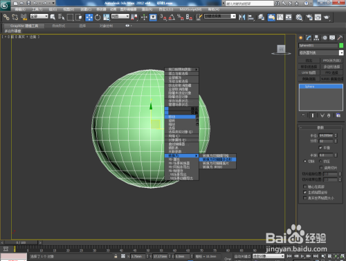鼠标右键点击球体,点击【转回为】-【转换为可编纂多边形】,转换后我们便可以对球面进行编纂;