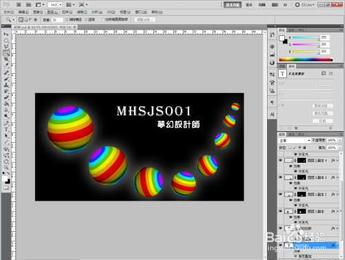 将我么保留好的彩球图片在Photoshop(CS5)中打开,抠出彩球图层后进行移动复制排版,添加恰当图层样式,使作品加倍完整即可。