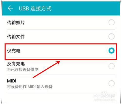 若是要封闭反标的目的充电,那么只需将usb毗连体例点窜当作其它的体例即可,若是你是要给手机充电,那么则可以将usb毗连体例点窜“仅充电”。