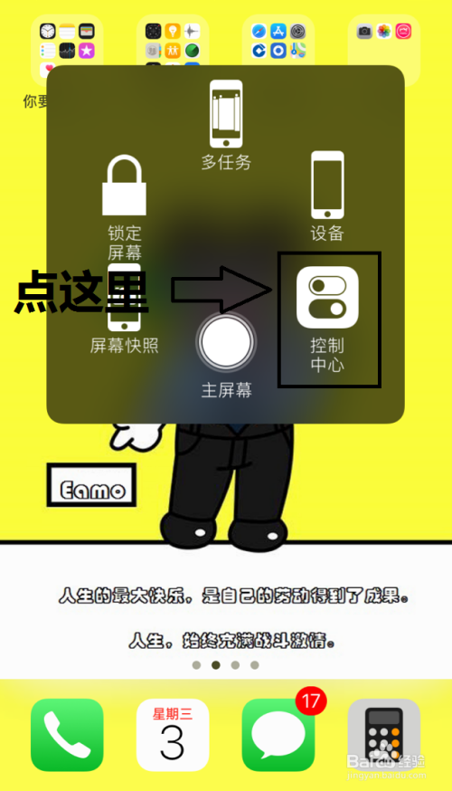 进入本家儿页面啦,我们把手指头(食指最合适)放在屏幕底边的边缘,然后标的目的上滑一下,就会呈现节制中间界面了。