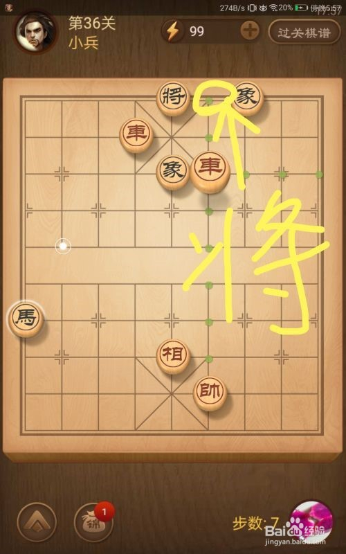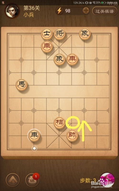 打开天天象棋,点击闯关,选择36关,棋局如图。