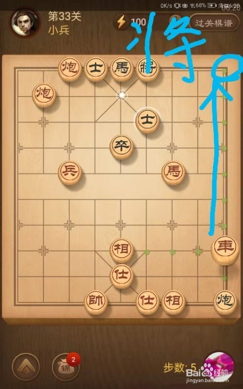打开天天象棋,点击“象棋”,然后点击”闯关“,选择第33关,棋局如下图所示。