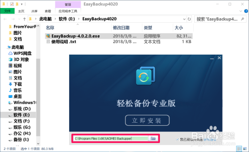 百度搜刮输入:轻松备份专业版软件下载,下载完当作后,安装轻松备份专业版软件,注重软件的安装路径: