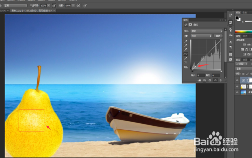再接着,我们利用曲线东西,将左下角的景物光线变暗,让其余整个光线的比例相协调。如下图所示。