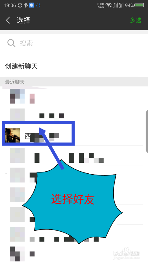打开选择分享的微信老友界面,选摘要分享的老友。如图所示