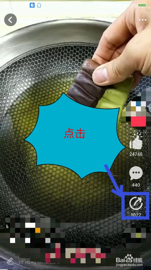 在短视频播放界面,点击右边的分享选项。如图所示