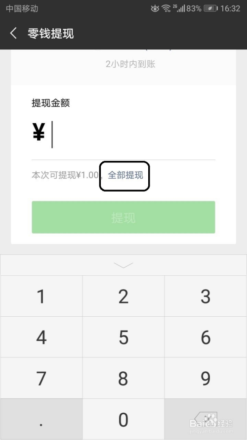 若是想全数提现就点击蓝字的全数提现。想提现几多就在输入提现几多。