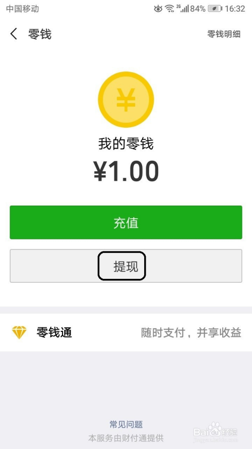 切换到零钱界面中点击提现按钮。