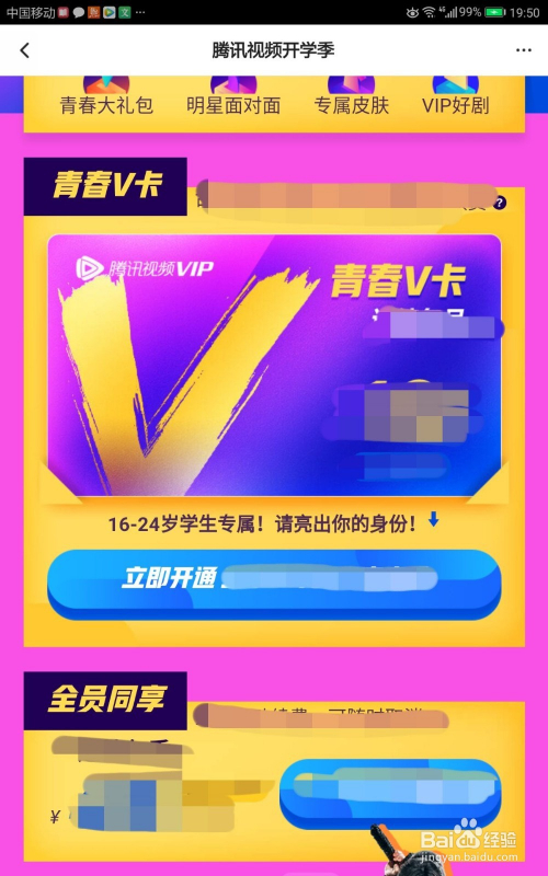 最后,系统会再次返回“腾讯视频开学季”,这是点击“芳华V卡”下的“当即开通”即可开通优惠学生会员。