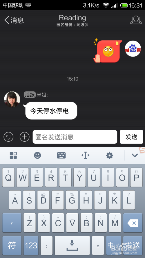点击聊天按钮中的“+”号码,选择“匿名”。