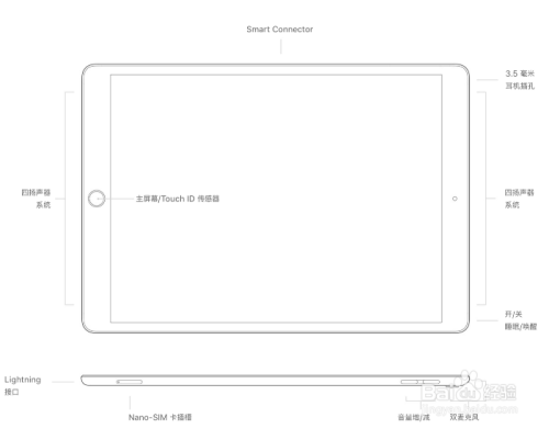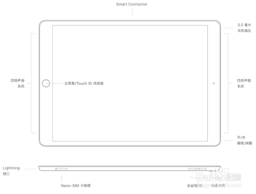 iPad Pro(12.9 英寸,第 2 代,2017),型号位于后盖上:iPad Pro 是 A1670,此外 iPad Pro wifi+4G版本是 A1671 iPad Pro wifi+4G国行版本是 A1821,外不雅及硬件位置分布如下图所示