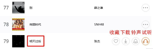 在“炫铃”页面,有良多歌可供选择,每首歌后面都有保藏、下载、铃声、试听四个选项。