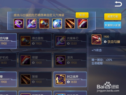 饮血勾镰可以晋升75点物理进犯力,本家儿要感化是附加了年夜量生命盗取,可以提高英雄的对战能力。