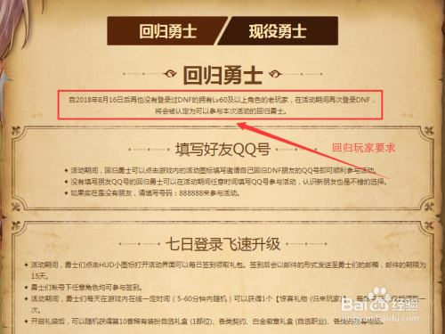 DNF冒险者回归玩家若是想加入活动。就要保举活跃玩家。或者是直接保举系统划定的号码。具体内容如下。