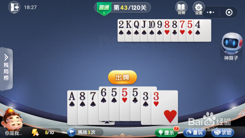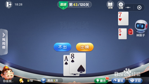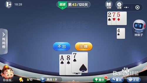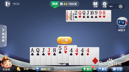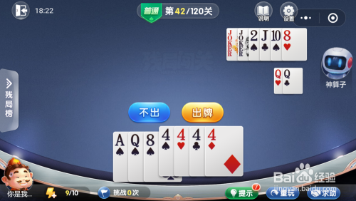 妙算子打出一张10,我打出一张A,接着打出一张8就过关了。