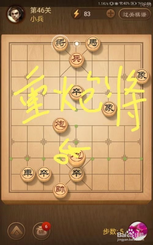 第六步,中炮左移,形当作重炮将军,闯关当作功!!!!!!!!