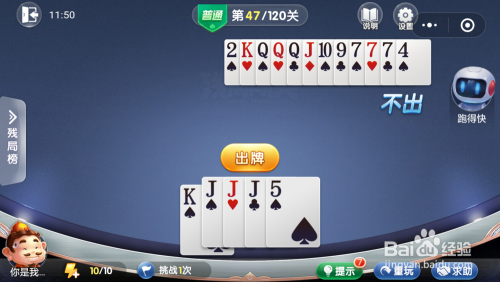 第47关先打出三张8带一对9,接着打出三张J带一张5,跑得快打出三张Q带一张4。