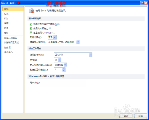 接着我们点击”选项“,这时将会弹”Excel选项“对话框。如图所示: