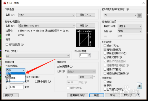 打开需要打印的CAD图纸,按Ctrl+P调出打印机,打印机名称选择PdfFactory pro