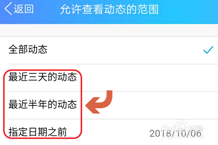 我们可以看到系统今朝默认的查看规模和微信一样,分为三天可见、半年可见以及指定日期可见三种,如图一所示...我们点击最后一项然背工动调整可以查看的规模,如许即可批量屏障该日期之前的所有说说了;