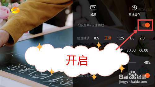 开启后,在视频播放界面,长按屏幕就会2倍速播放,不按屏幕了就正常播放。如图所示