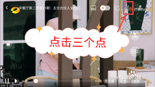 在全屏播放界面,点击右上角的三个点图标。如图所示