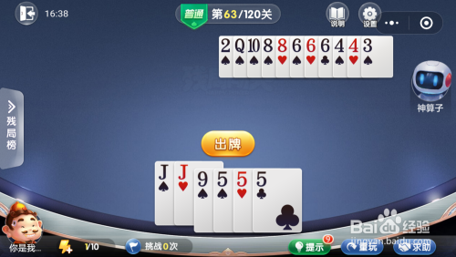 第63关先打出一对J,接着打出三张5带一张9就过关了。