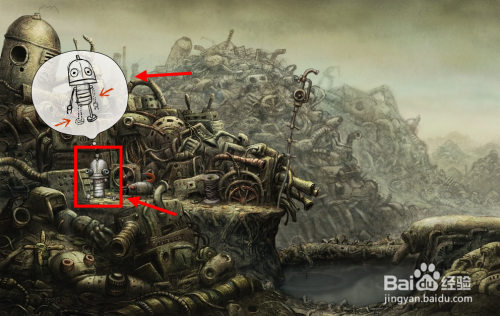 找不到线索的环境下,鼠标点击机械人,得知缺胳膊少腿。