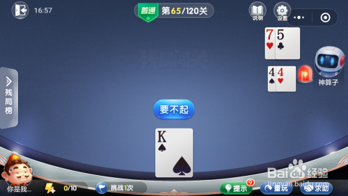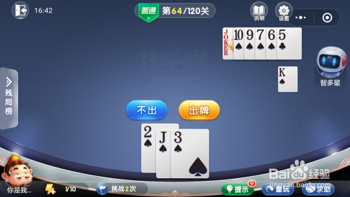 妙算子打出一对4,接着打出一张5,然后我打出一张K就过关了。