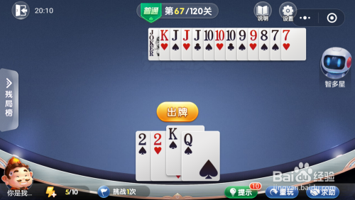 第68关先打出一张10,妙算子打出一张Q。