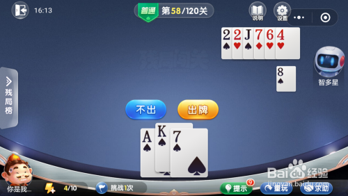 智多星打出一张7,我打出一张A,智多星打出一张2一张J一张4,然后我打出一张7就过关了。