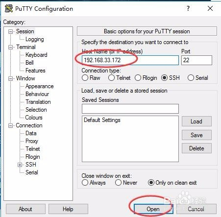 打开PuTTY软件,输入CenterOS办事器的IP地址,然后点击Open,如下图所示: