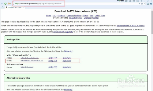 百度搜刮PuTTY,然后按照Windows操作系统版本,下载对应版本,如下图所示:
