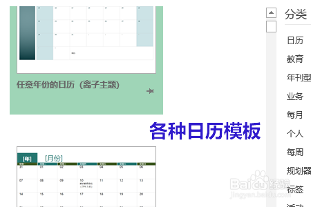 在搜索框我们输入“日历”,如许系统就会弹出很是多的日历模板可供我们选择,如图二...
