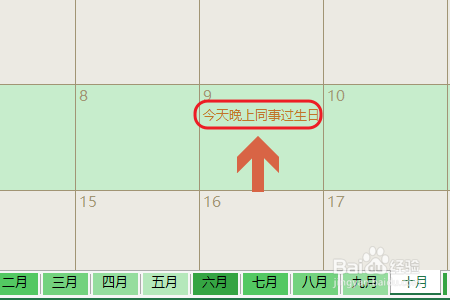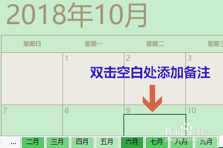 其次我们还可以在日历中添加备注,好比说某个期间有个主要的工作,为了防止到时辰健忘,我们可以双击日期中的空白单位格,如许即可添加备忘录了;