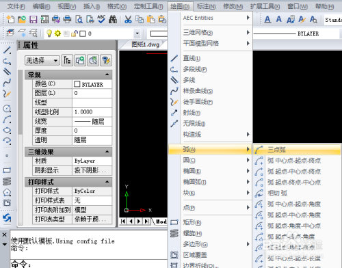 选择软件上方【画图】—【弧】—【三点定弧】号令,在界面随意绘制一个圆弧。