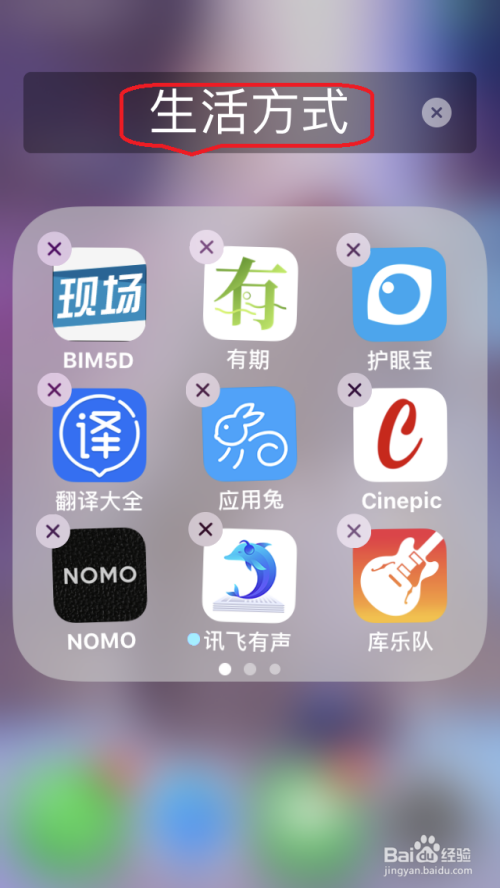 长按应用文件夹,使其闪灼晃悠,点击进入文件夹即可点窜上方应用文件夹名称。