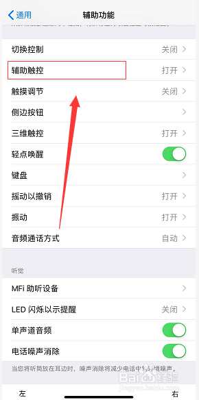 在辅助功能界面点击辅助触控选项卡,如下图所示