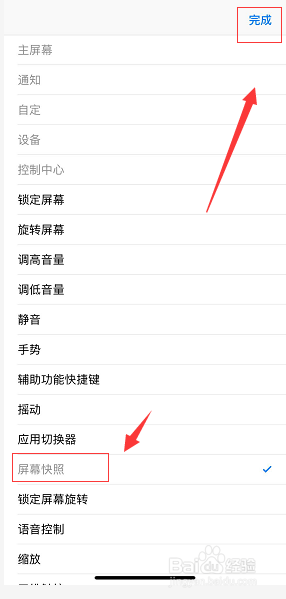 在功能列表中选择屏幕快照,如许屏幕快照就放到了辅助触控的小白点中了,如下图所示
