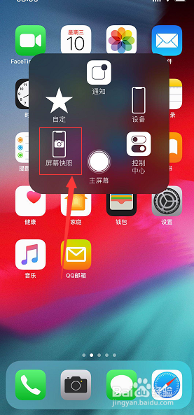 在你需要截图的界面,点击小白点,选择屏幕快照就可以截图当作功了,如下图所示